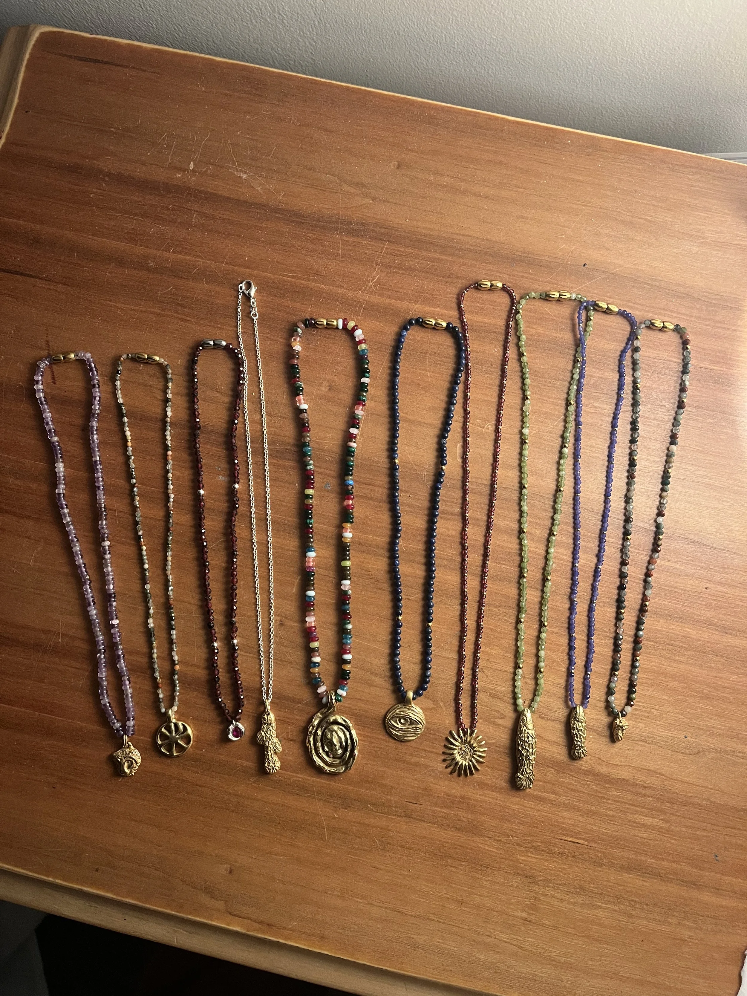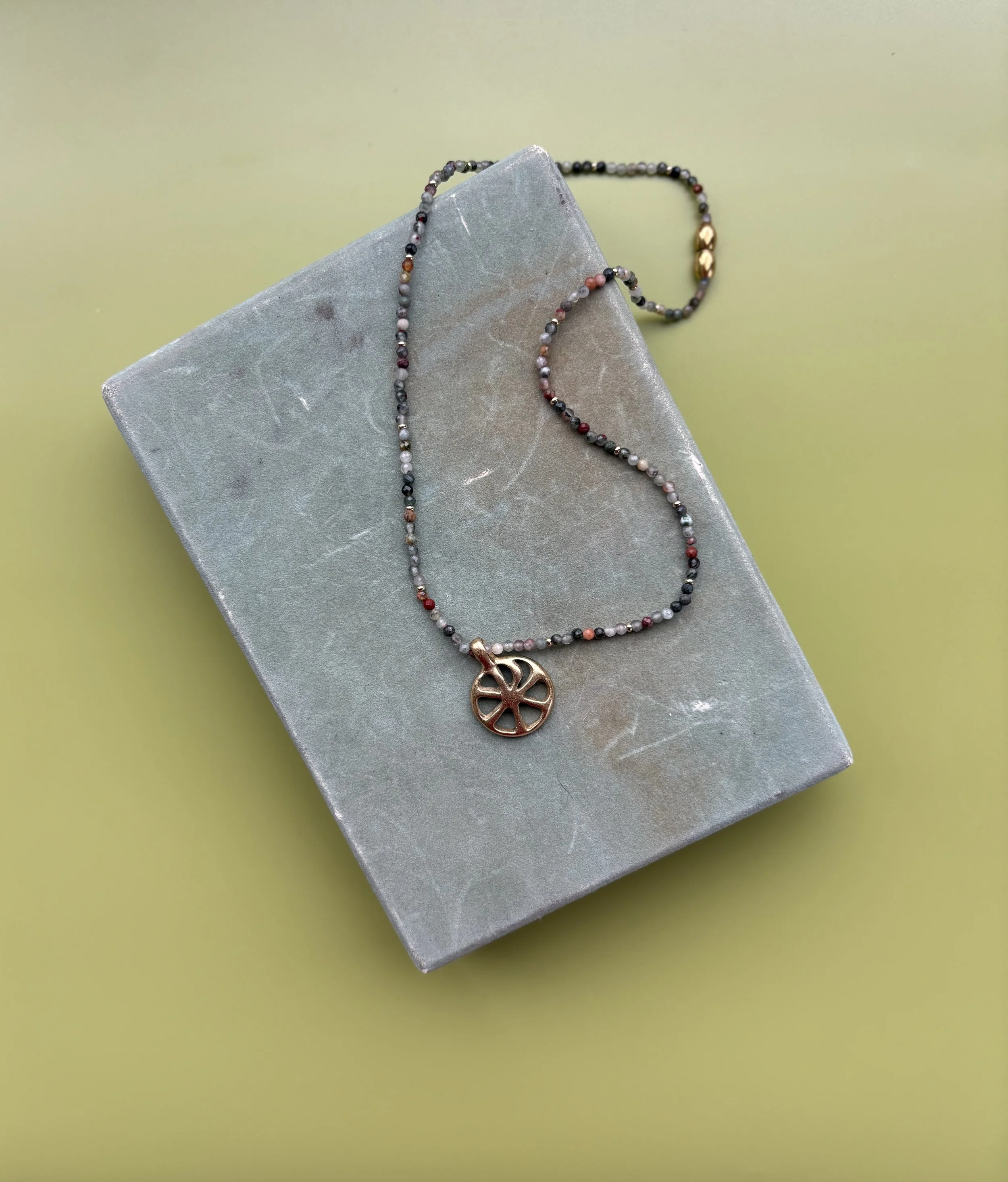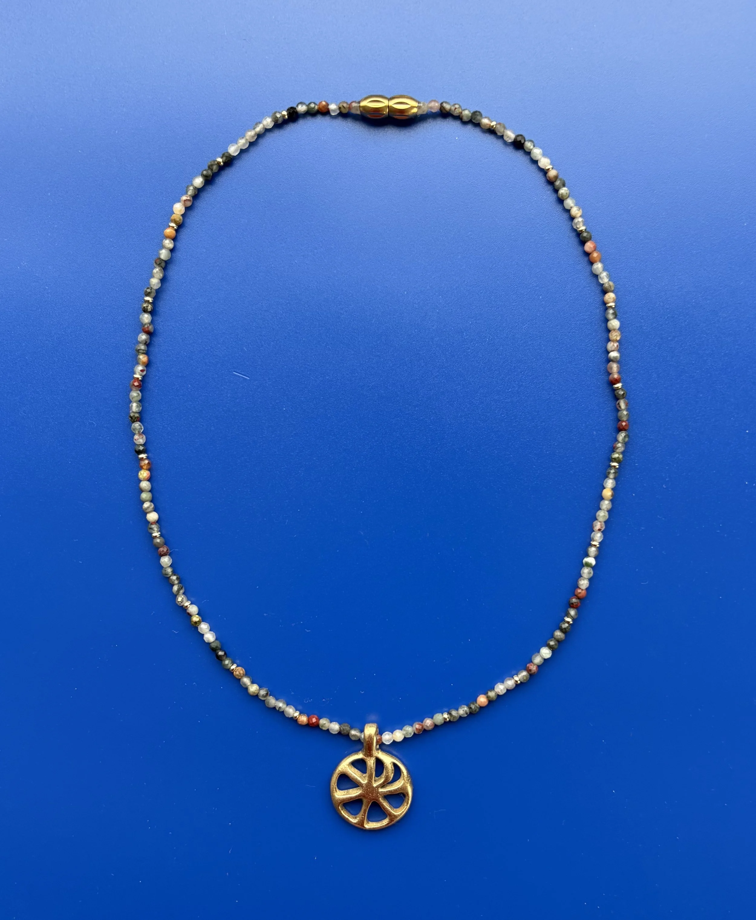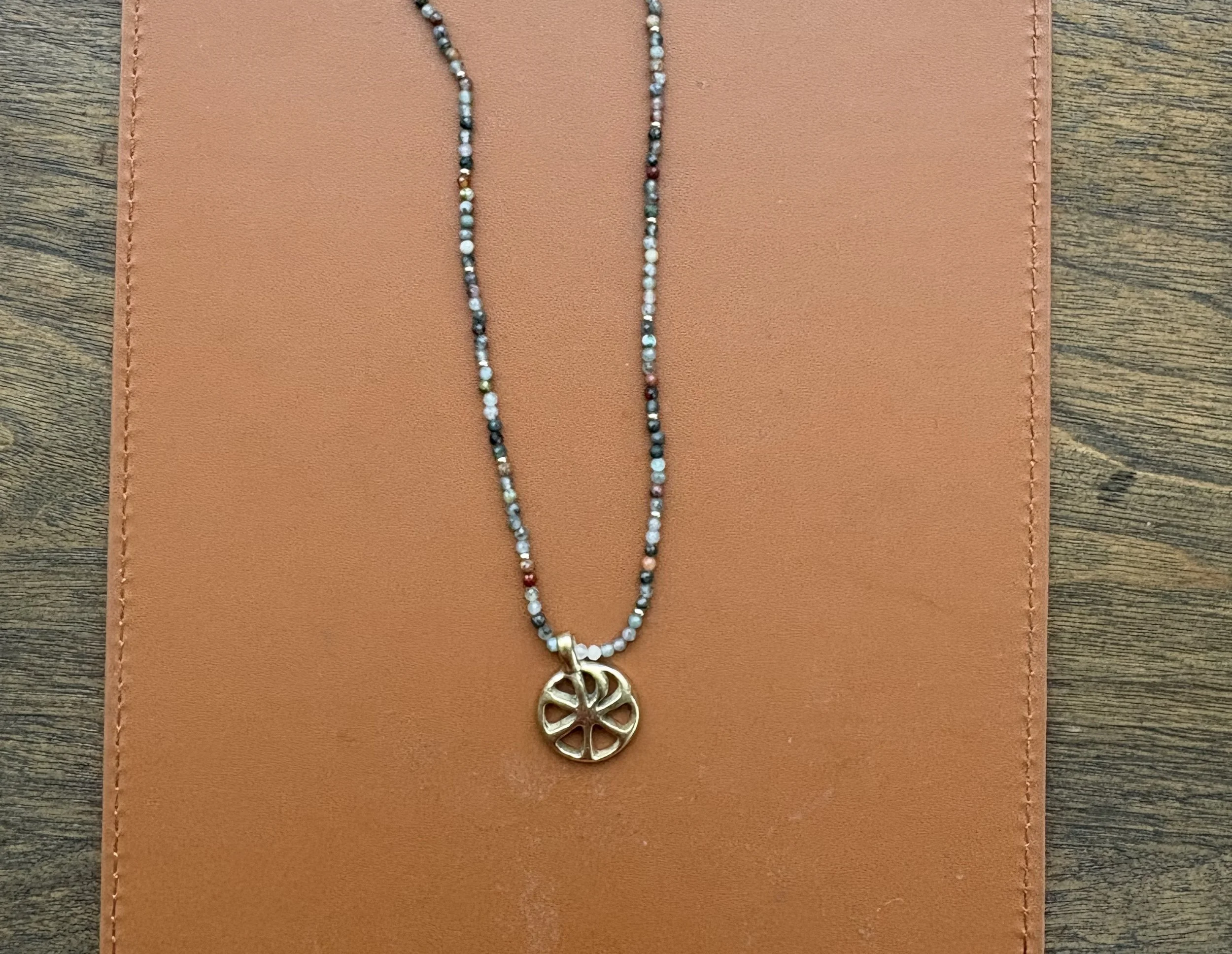 18kt gold plated bronze charm | 16inch beaded necklace