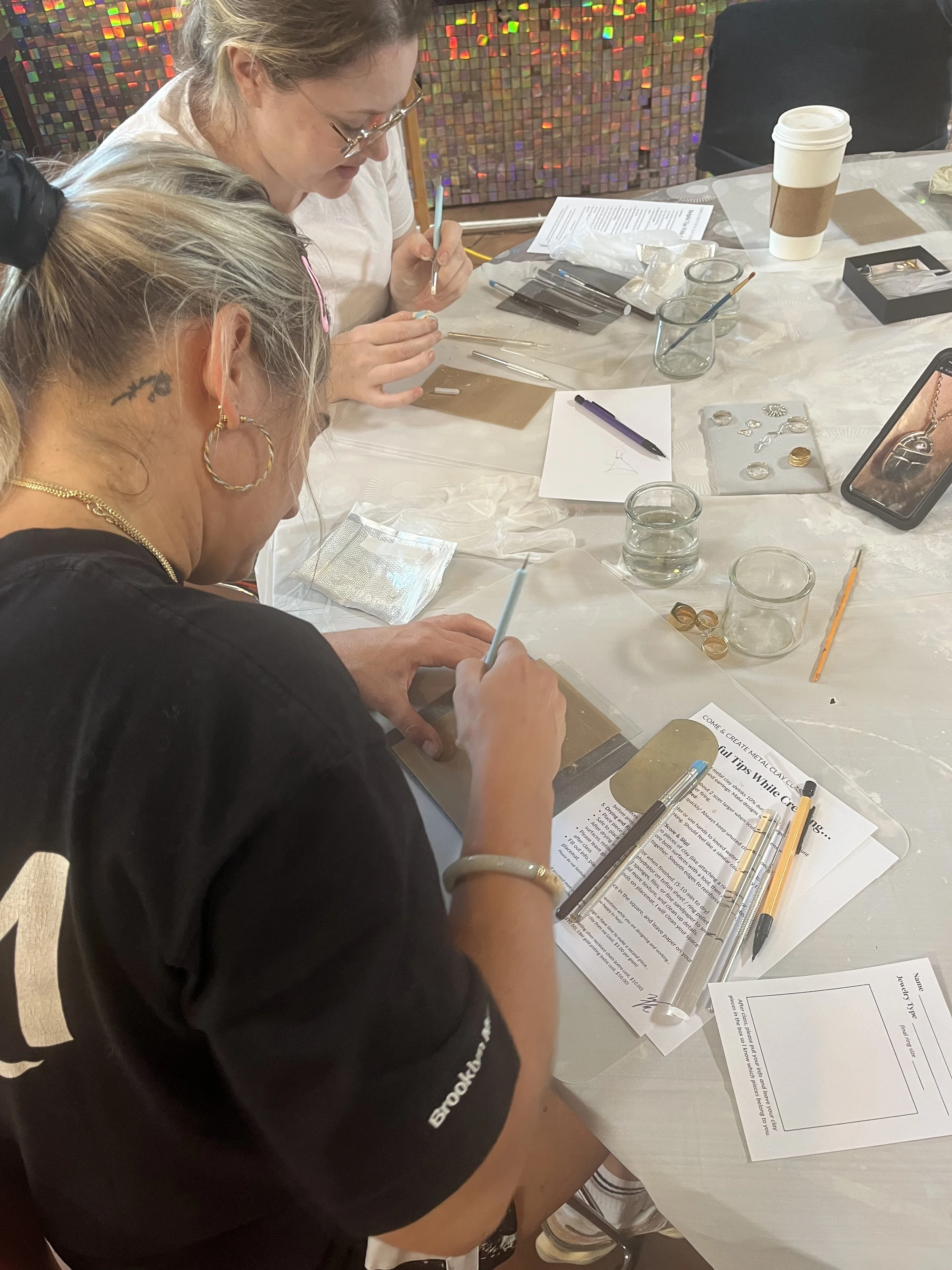 Gather around the table for a 2-hour guided class where you’ll learn the art of metal clay and hand-sculpt your own custom pendant from start to finish. Whether you’re brand new to jewelry-making or simply craving a creative night out, this experience is designed to be approachable, inspiring, and deeply meaningful.