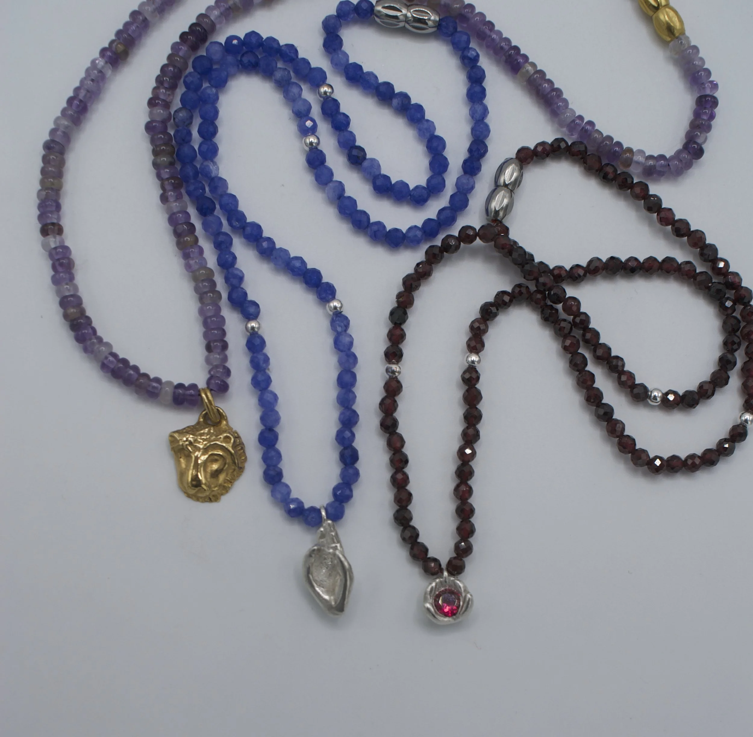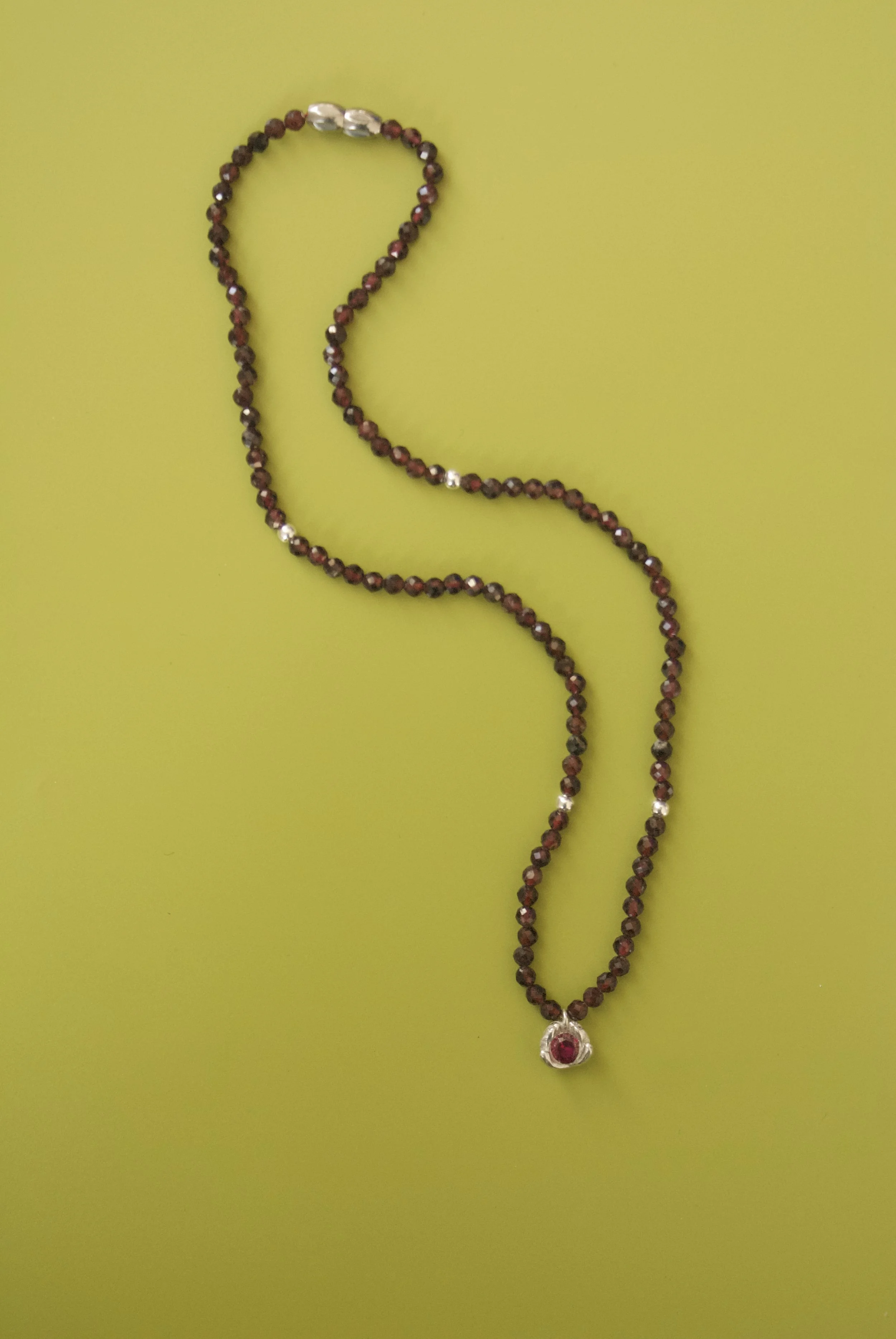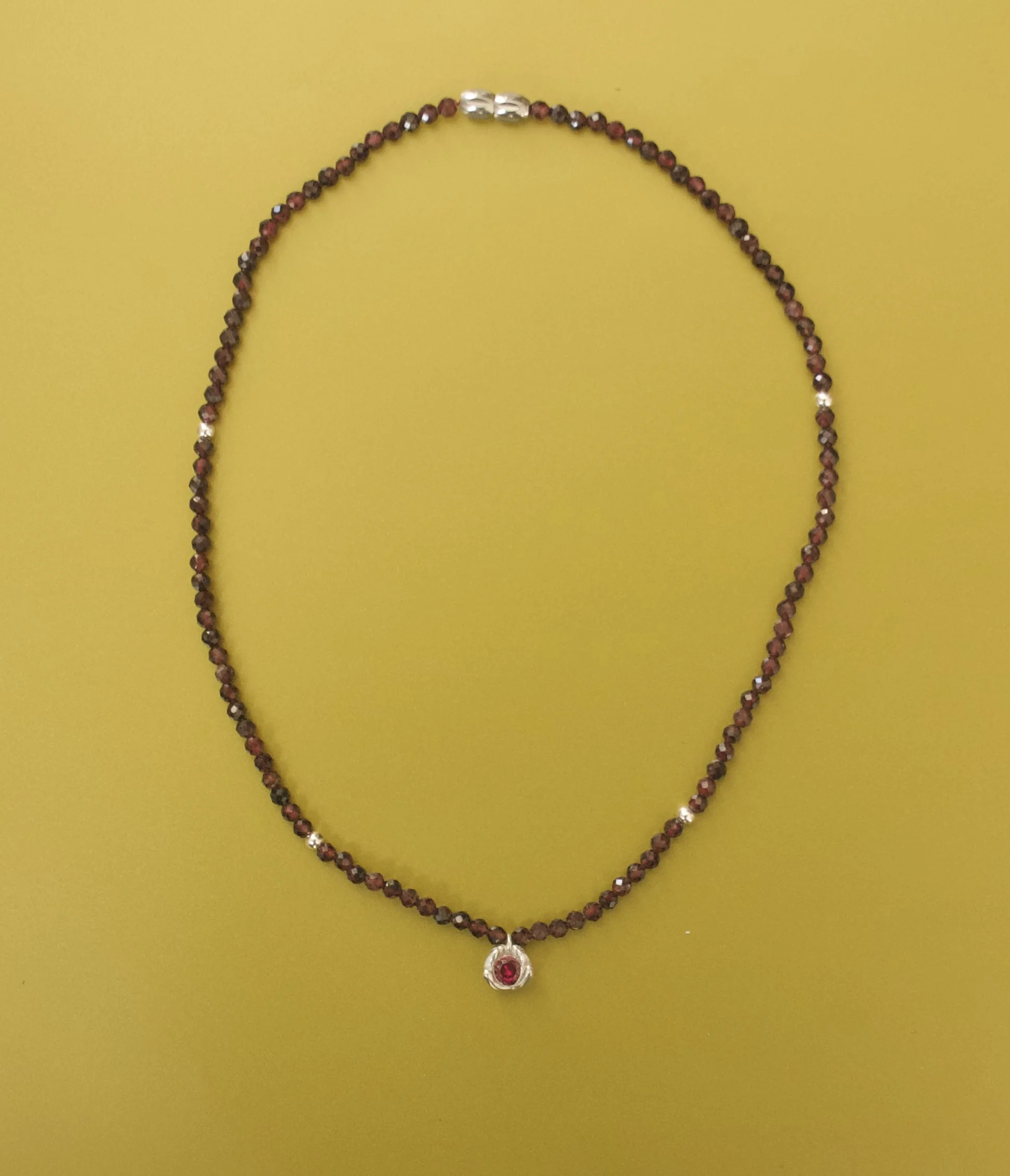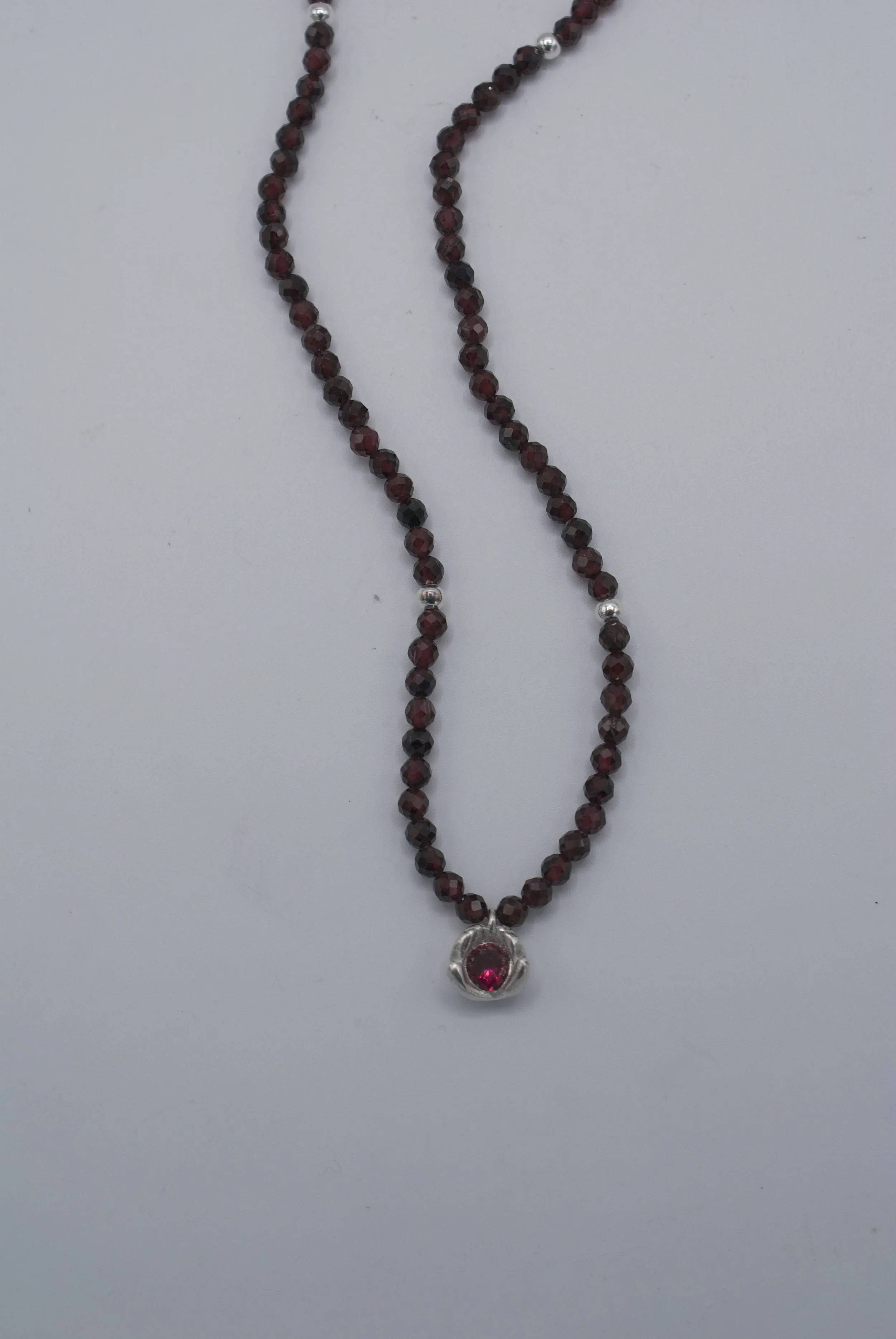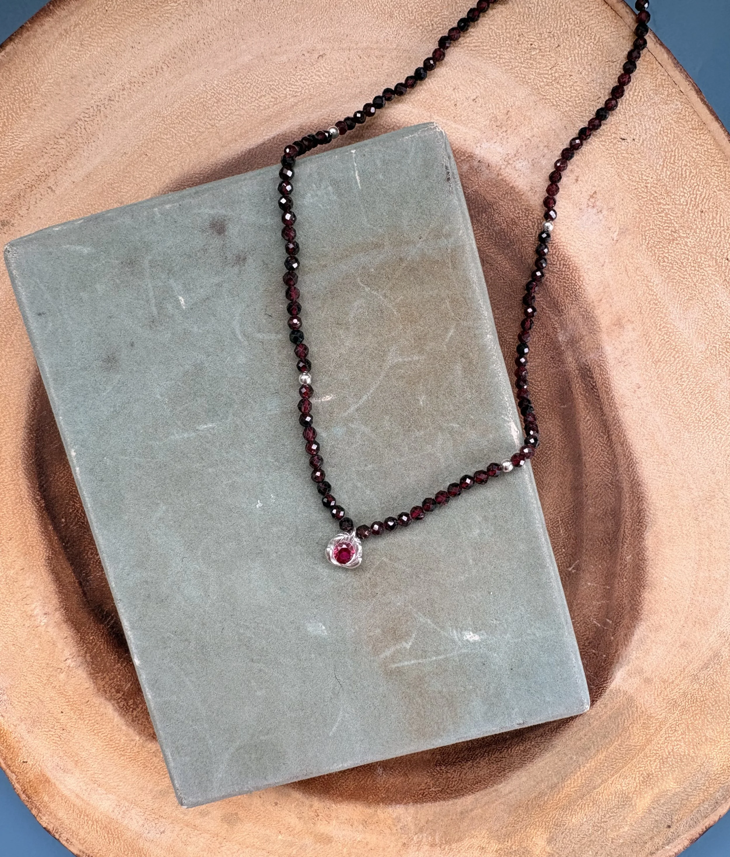 Sterling silver charm | 4.5mm lab ruby| 16inch beaded garnet necklace