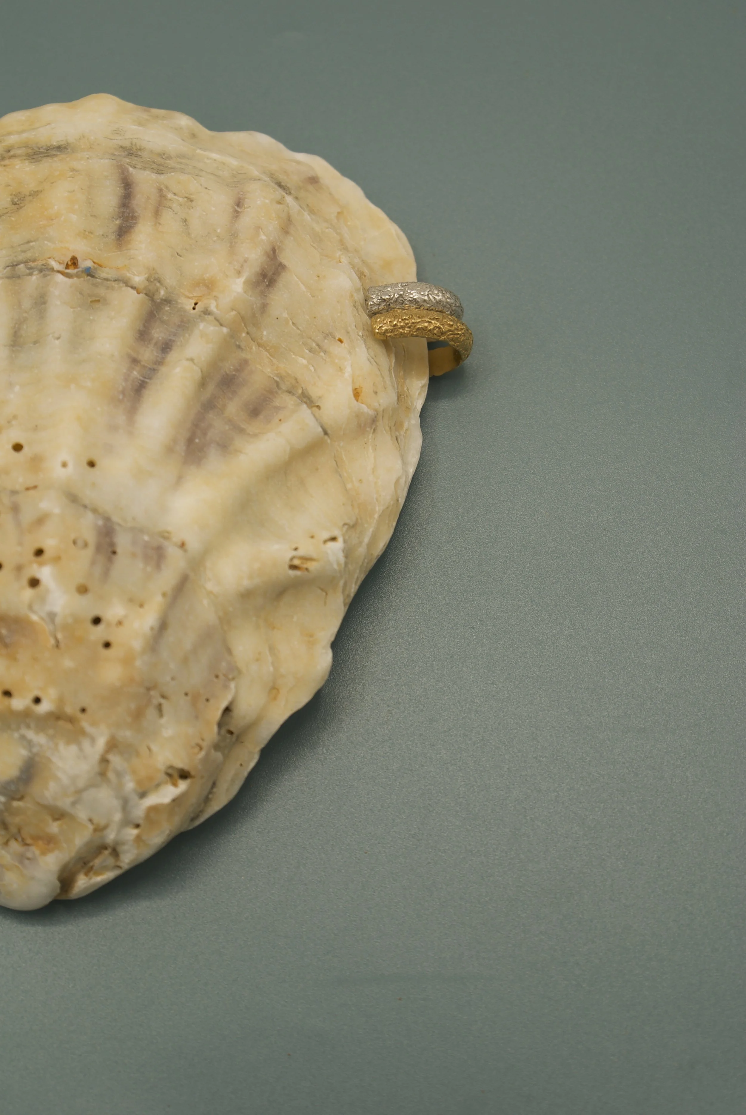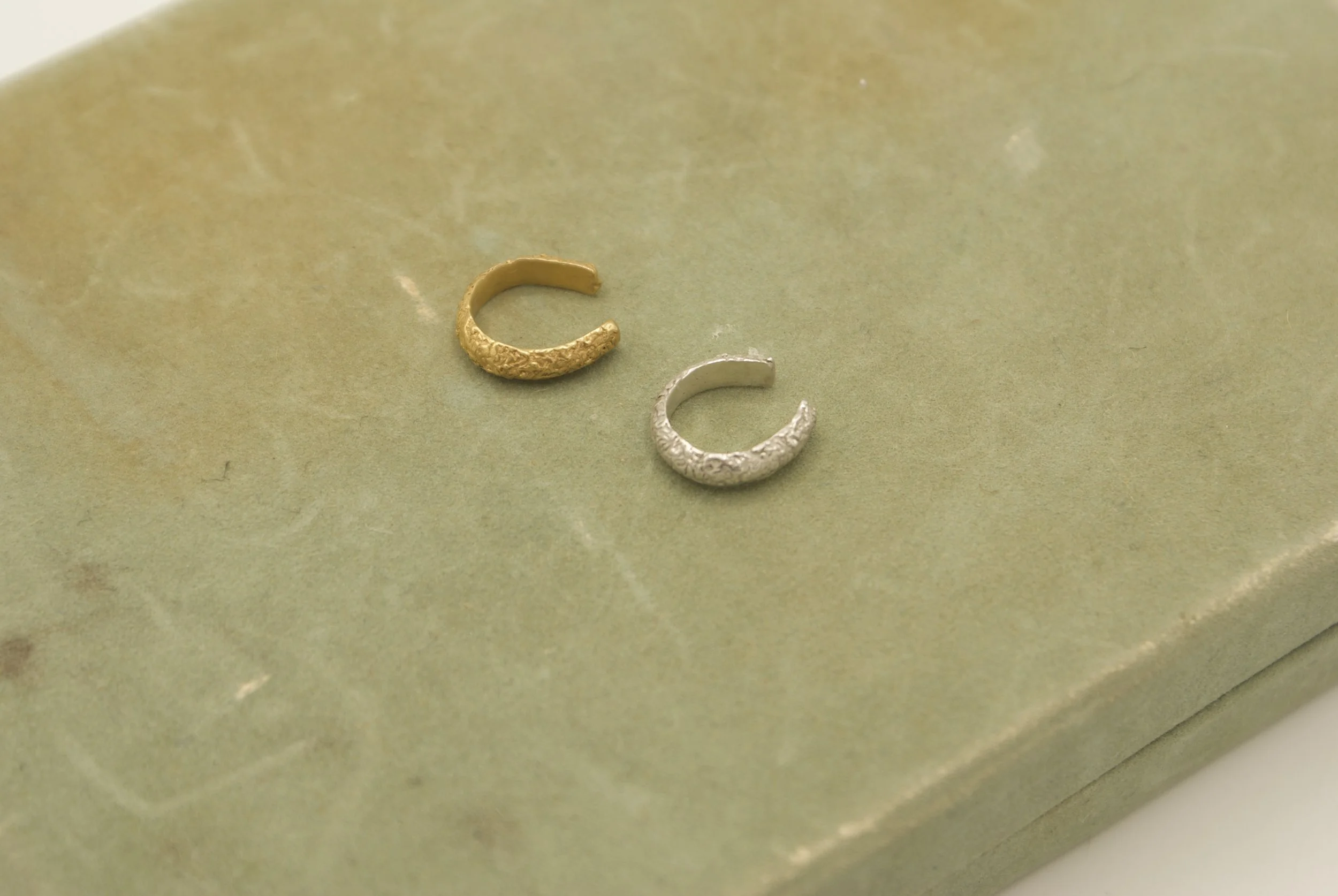 Two stackable hand sculpted ear cuffs with a texture of the hand written words from Romans 10:17. When feeling the gentle texture of this ear cuff my hope is that you would meditate on that verse and be reminded of its truth and power.